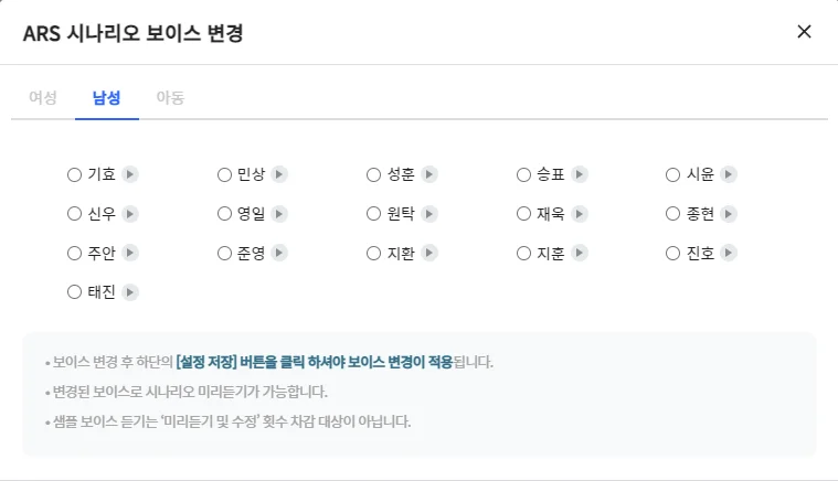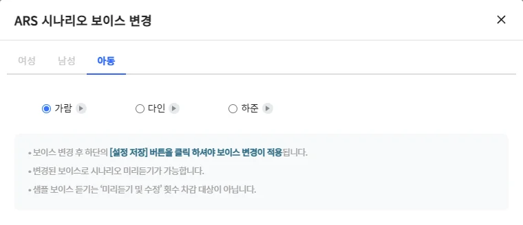 상담콜이 이 기능을 도입해 42가지 AI 보이스로 전화 응대 시나리오를 제작할 수 있도록 만들었답니다. 업종에 알맞은 AI 목소리를 택해 다양한 음성 시나리오를 제작할 수 있어 더 쉽고 자연스러운 상담이 가능하죠!