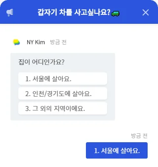 챗봇 시나리오의 ‘뎁스(Depth)’는 대화의 깊이, 단계를 나타내는 용어입니다. <갑자기 차를 사고 싶어질 때 도움되는 챗봇>을 예로 들어볼게요.