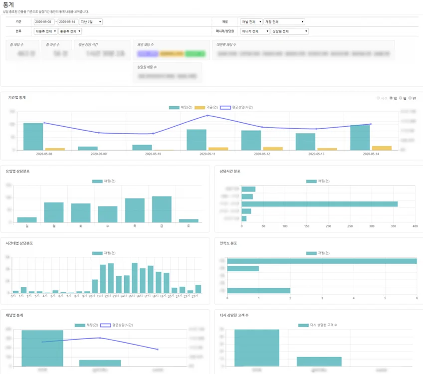 (상담 시간, 대기시간, 문의 사항, 키워드, 불만의견, 칭찬사례 등)