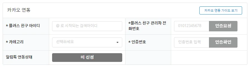 이 기능을 활용하려면 카카오톡 채널(구 ‘플러스친구’) 아이디 연동이 필요합니다.