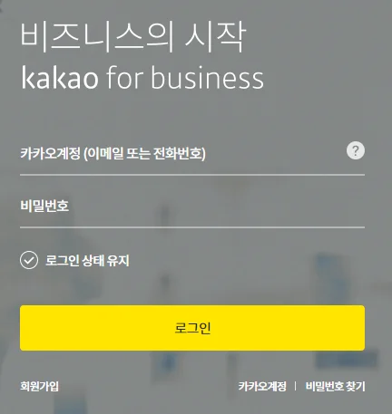 카카오톡 아이디를 새로 만들거나, 기존 아이디로 로그인한 다음 관리자로 가입을 완료해야 카카오톡 채널을 이용하실 수 있습니다.