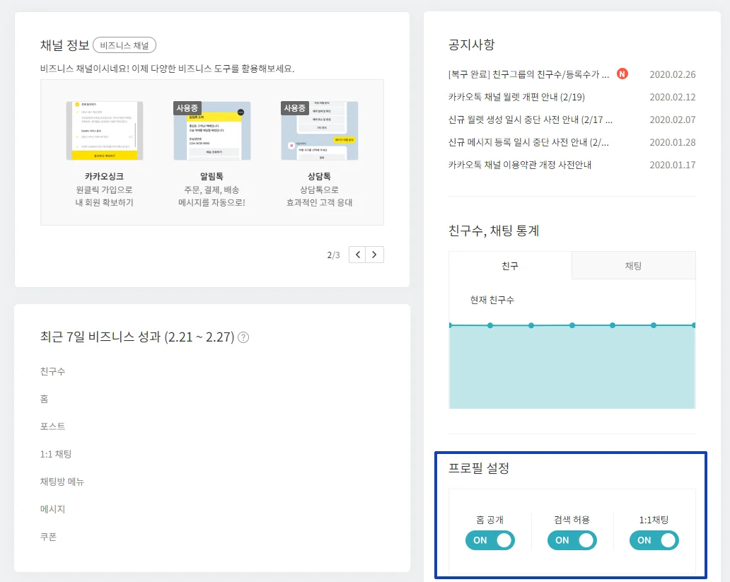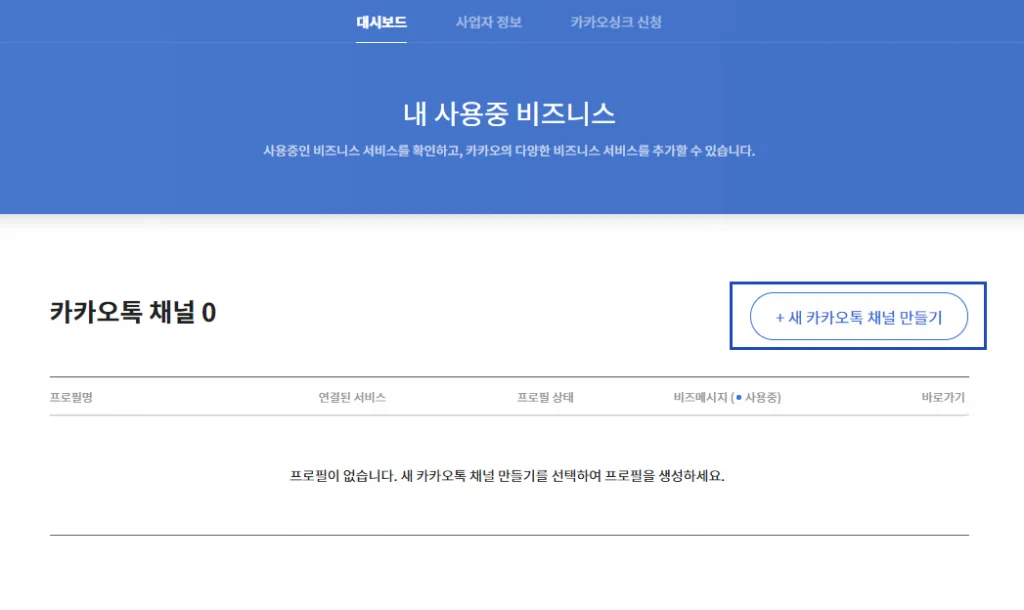 가입이 끝났다면 카카오톡채널 관리자 센터에 로그인한 다음