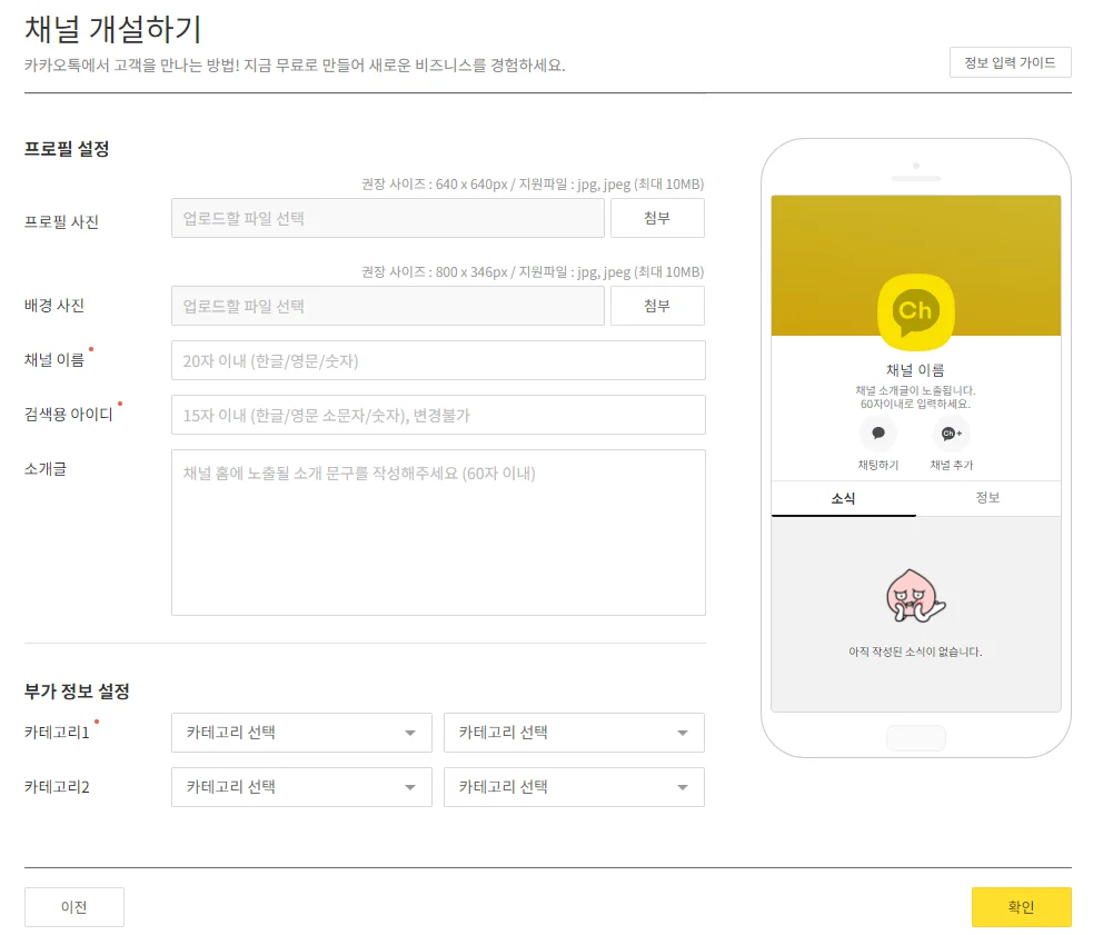 이 부분 꼭! 체크하신 다음 카카오톡 채널 개설 가입을 완료해 주세요. 이제 정말 얼마 남지 않았습니다✨