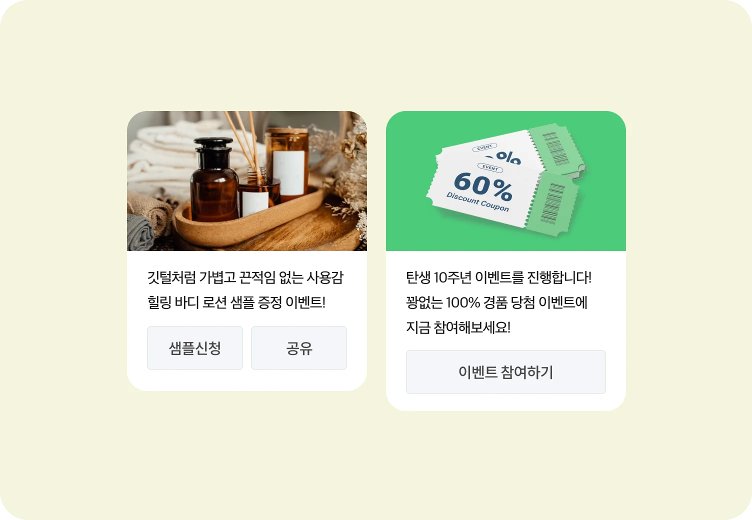 이에 더해 스페셜 메뉴 안내와 같은 이벤트 내용을 고객에게 쉽게 공유 가능해요. 레시피 공유를 통해 고객의 흥미를 끌 수 있도록 활용할 수도 있겠죠?