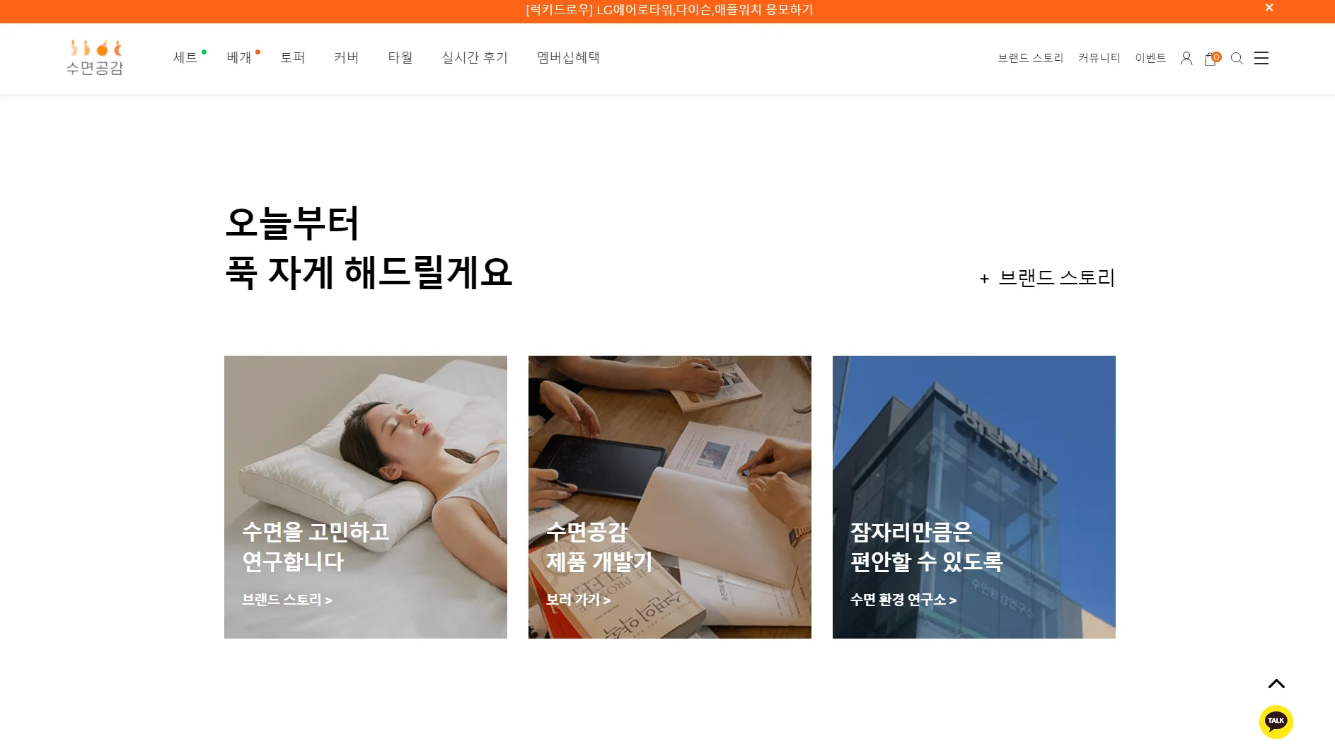 흔히 고객이 부담 갖지 않는 레이아웃 구성은 후킹 메시지나 이미지 - 브랜드 내용 - 제품 및 실적 - 나에게 적용하기 순으로 구성되어 있어요.