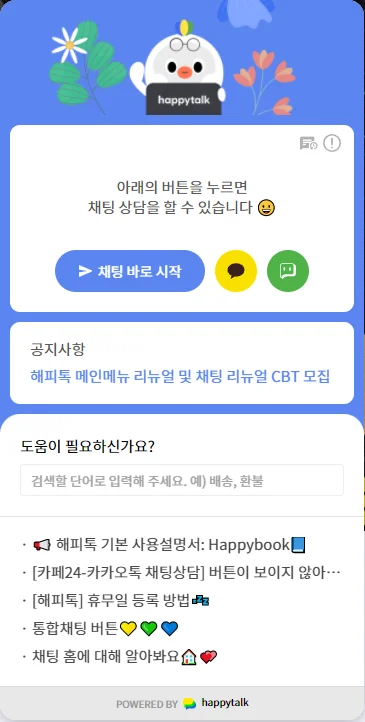 웹채팅의 장점은 챗봇이에요. 상담사가 퇴근을 하더라도 자주 하는 질문과 답변을 등록해두면 챗봇이 상담사 대신 고객을 응대해 주죠. 챗봇은 24시간 평일 휴일 상관없이 가동되기에 고객이 기다릴 필요도 없어요.
